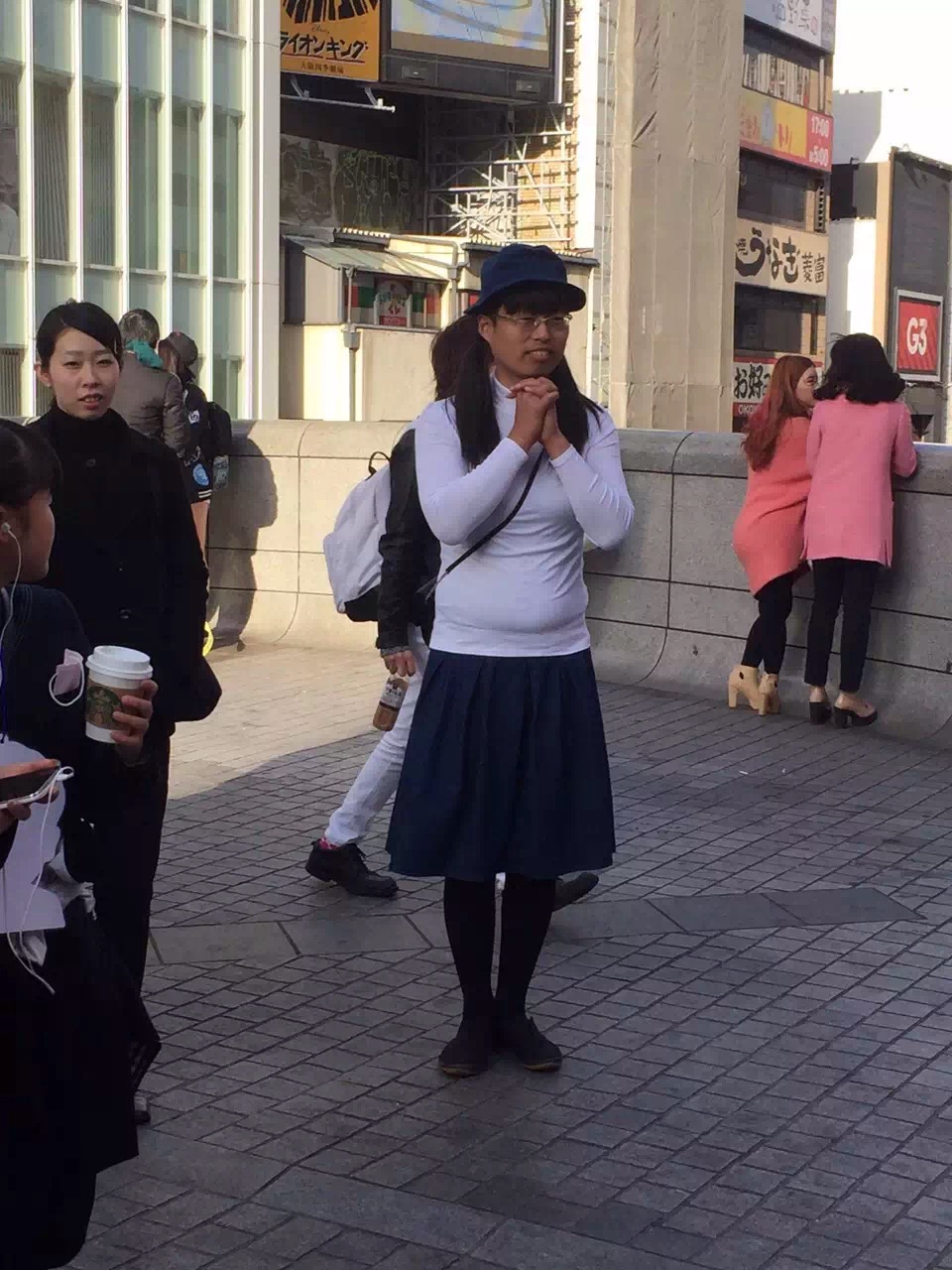 可能很多人来到日本旅游,在银座,涉谷等大的观光地都可以见到下面这个 学生服大爷!